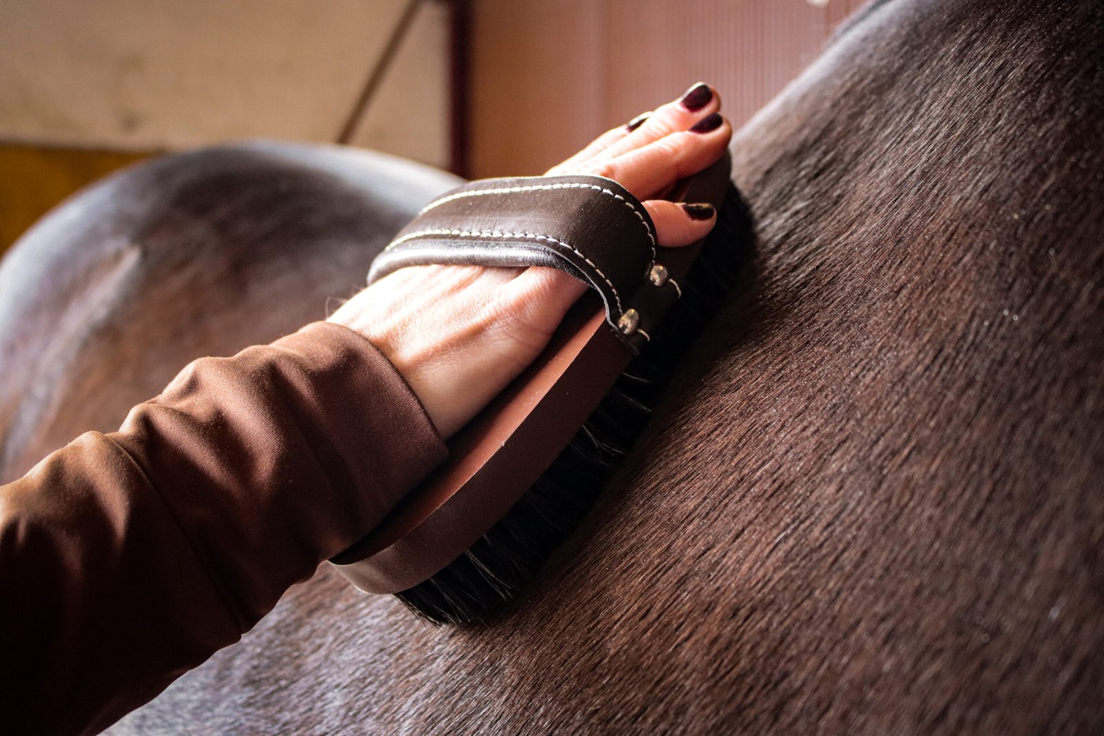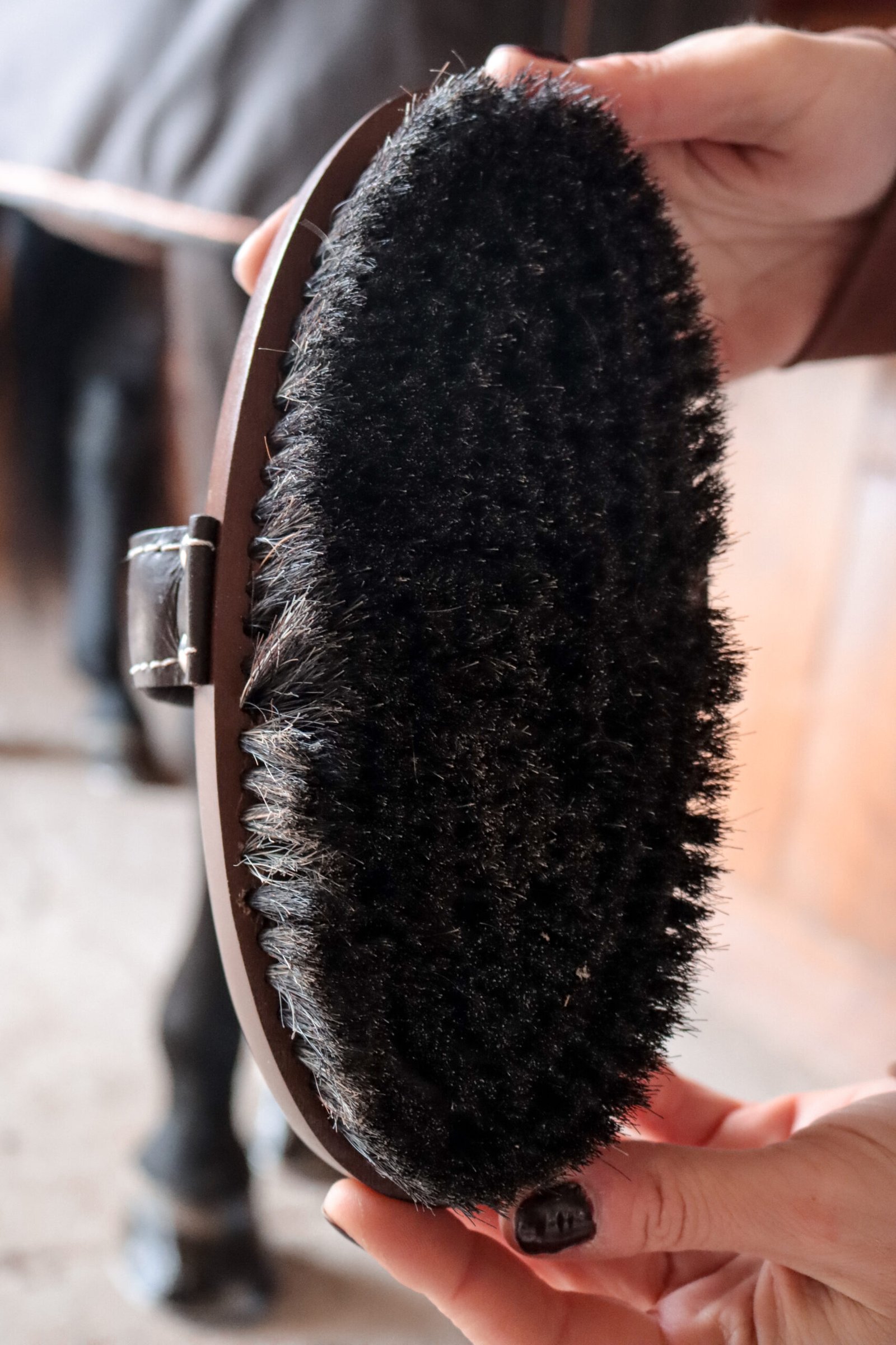 El cepillo Harmonia Aura, parte de la Colección Harmonia, está diseñado para el acabado final de brillo en el cuidado del caballo. Sus cerdas suaves acarician la capa, retiran el polvo fino y realzan el lustre natural sin irritar la piel.